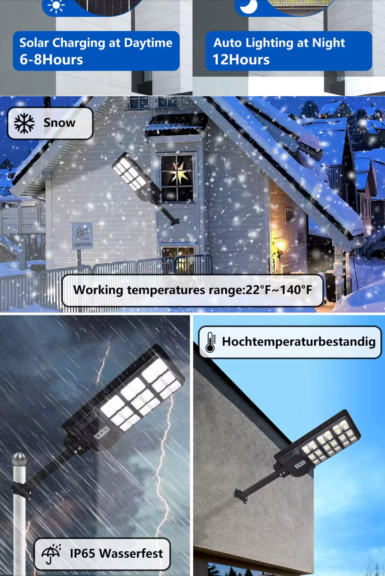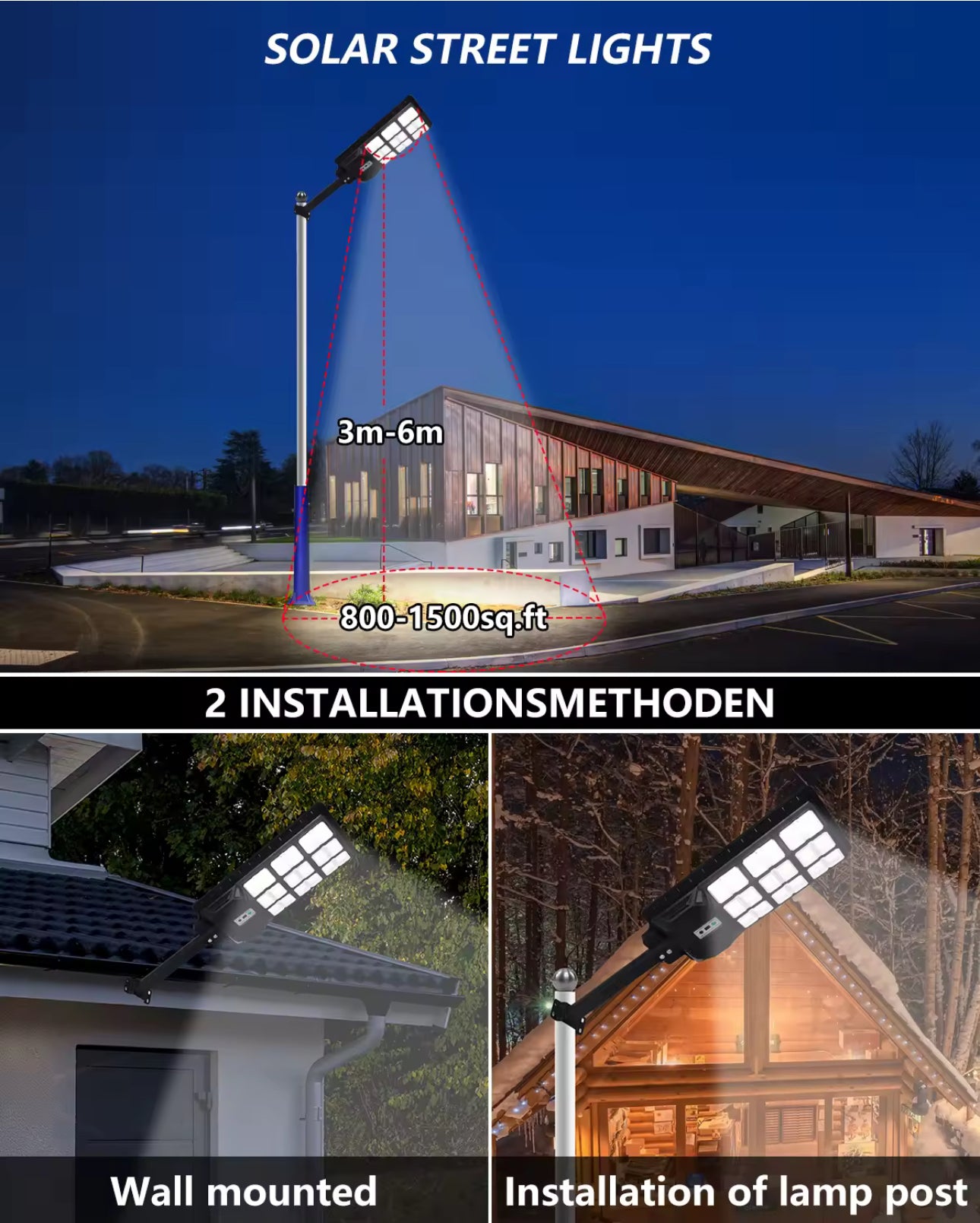 GZM Solar Street Light, 2000W, motion sensor, IP67 Waterproof/Weatherproof, very bright 20000LM, LED, 6000K white light, monocrystalline silicon solar panel.