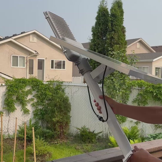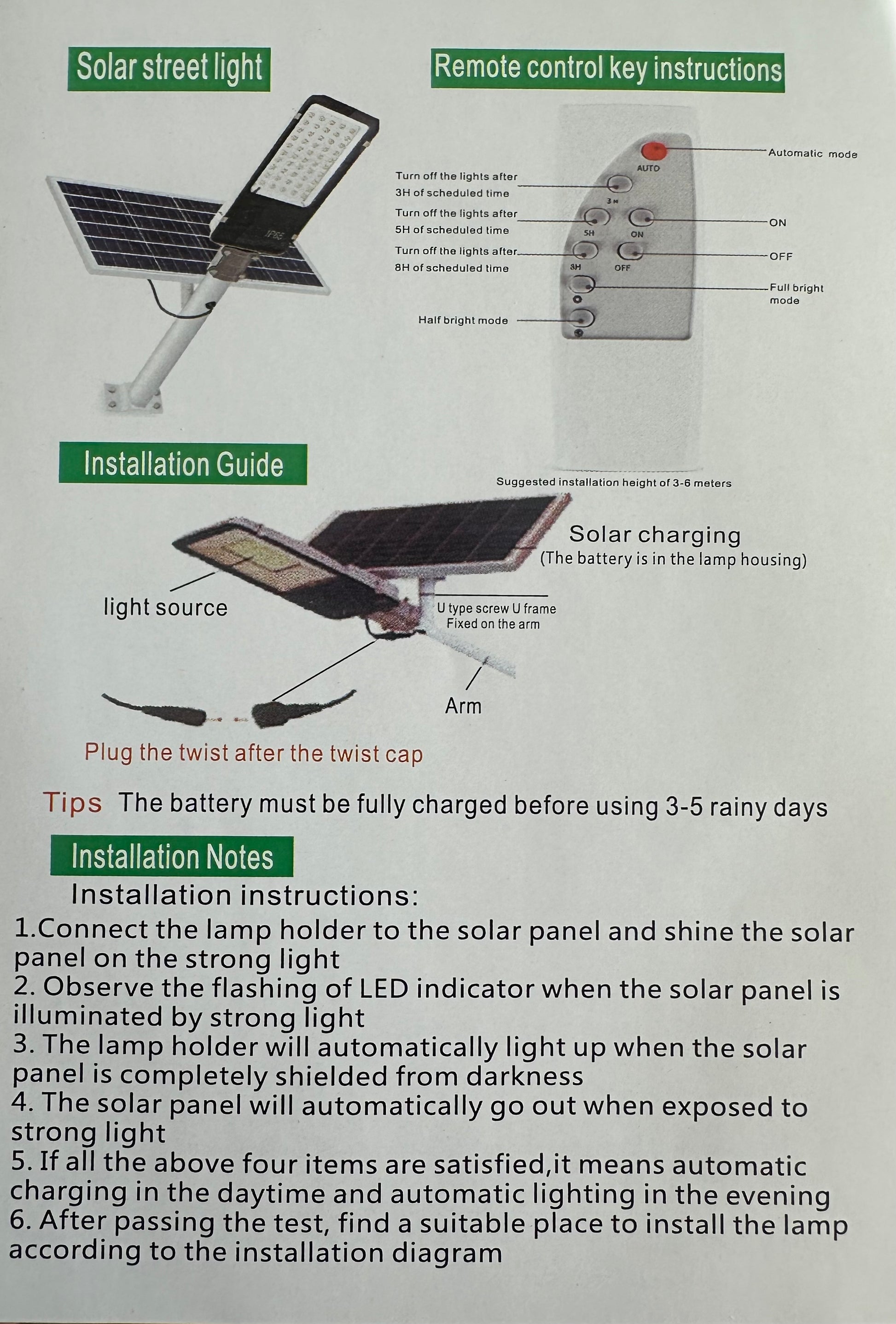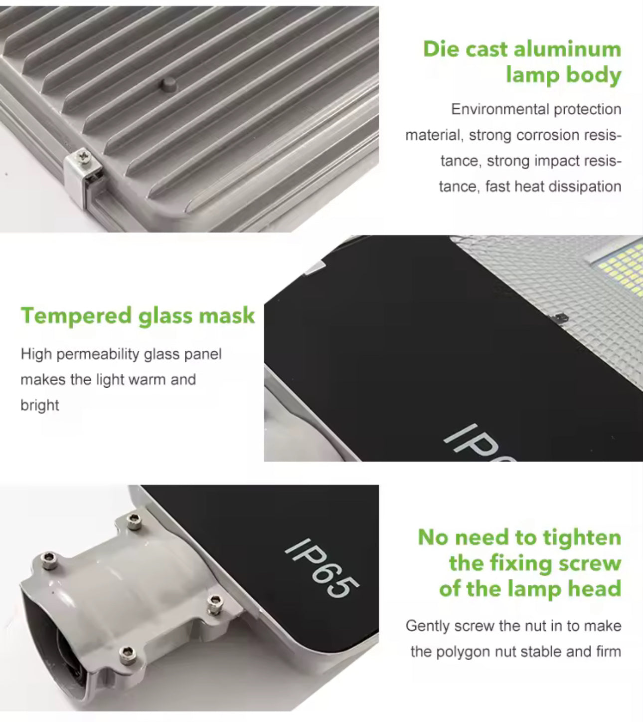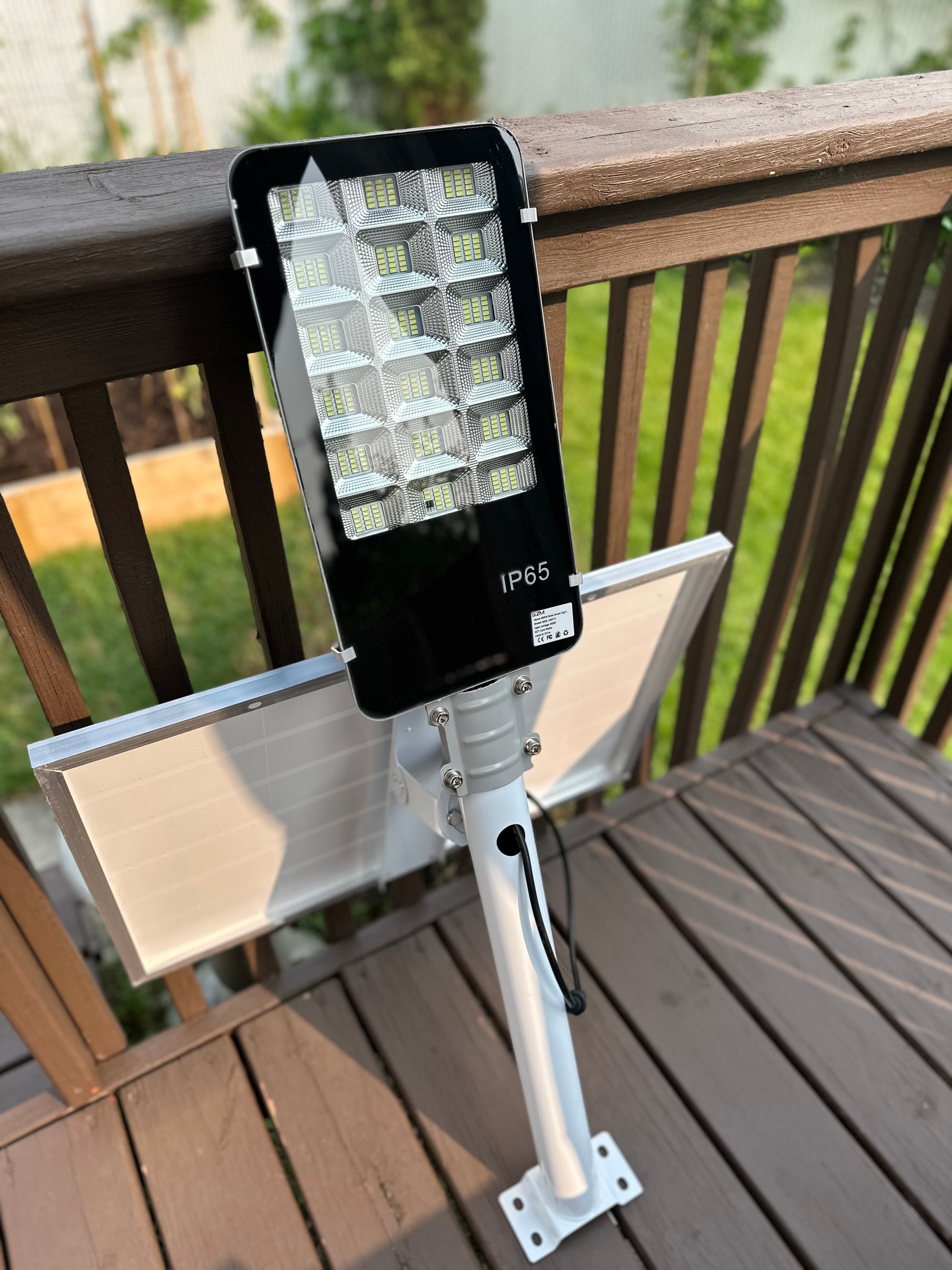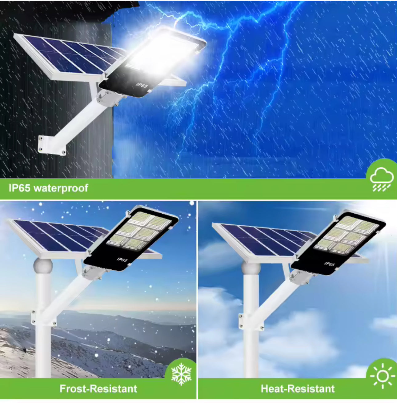 GZM Solar Street Light, 800W, LED cool white light, IP67 waterproof, weatherproof, die cast aluminum, polycrystalline silicon solar panel, remote control.