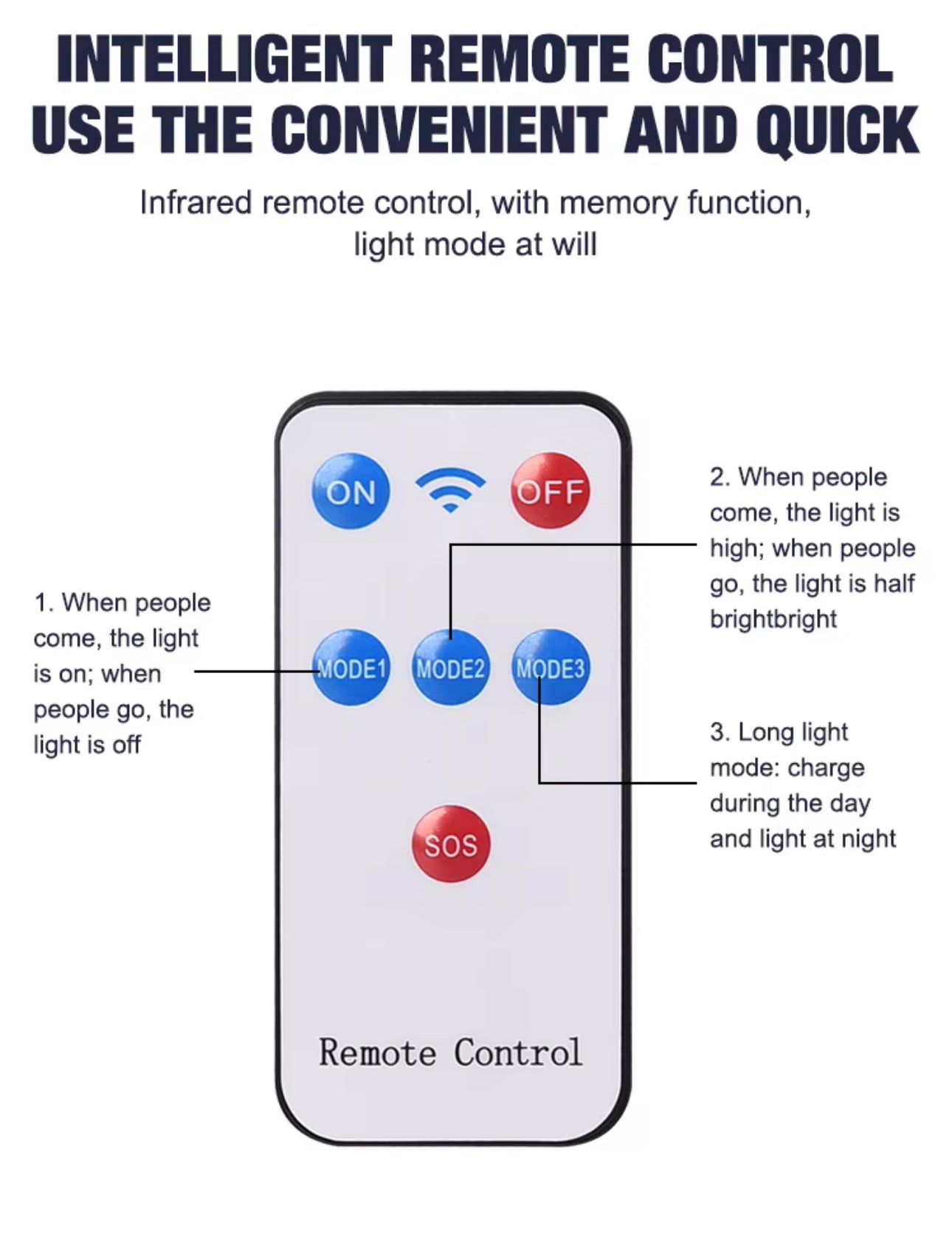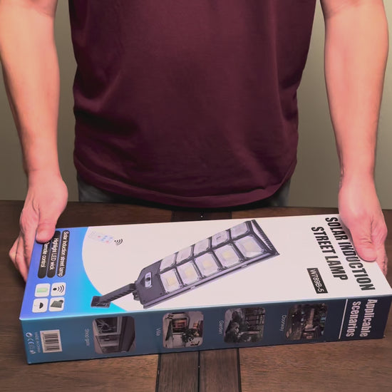 Solar Street Light / Security Light / Floodlight, brand new, very bright, 420 LED beads, 5000K white light (daylight), motion sensor, IP65 waterproof / weatherproof, 3 lighting modes, remote control, charges battery during day, auto ON at dusk and OFF at dawn, 120 degree sensor range, large capacity 18650 battery, lithium iron phosphate battery, fast charging and long service life, polycrystalline silicon solar panel.